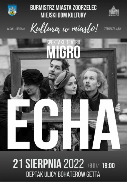 Drugi spektakl to „Echa” w wykonaniu teatru Migro. To przedstawienie bez słów, inspirowane książką Agnieszki Pajączkowskiej „Wędrowny zakład fotograficzny”. Jest impresją na temat Kresów Wschodnich. Opowiada o zapomnianych miejscach, ludziach i przedmiotach, które zostają. Odwołuje się do wspomnień, ale również pamięci przyszłych pokoleń.