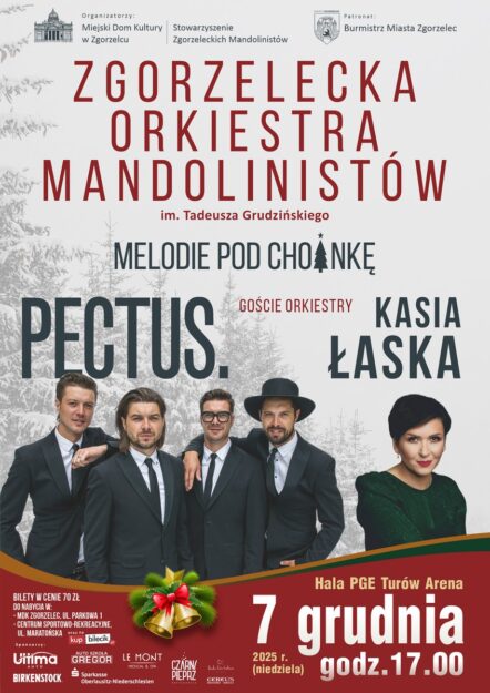 7 grudnia o godz. 17:00 Zgorzelecka Orkiestra Mandolinistów, jak co roku na początku grudnia, zaprasza do hali PGE Turów Arena na koncert „Melodie pod choinkę”, który wprowadzi nas w atmosferę najbardziej rodzinnych świąt w kalendarzu.