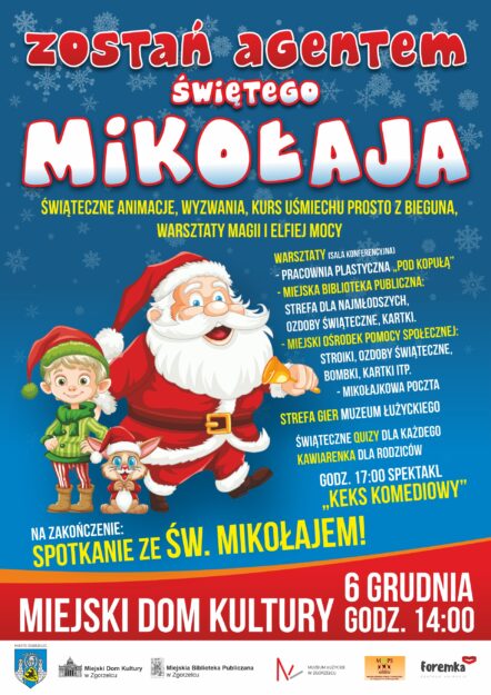 Spotkanie z samym świętym Mikołajem! Specjalnie dla Was odwiedzi Miejski Dom Kultury, żeby wysłuchać Waszych życzeń i obdarować małym, słodkim upominkiem!