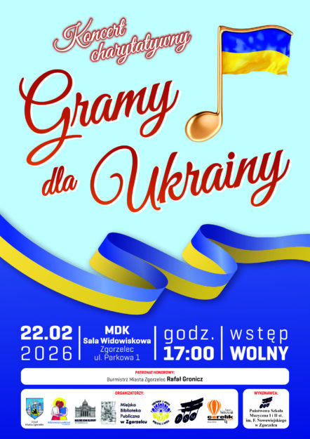 22 kwietnia o godzinie 17:00 zapraszamy Państwa na koncert charytatywny “Gramy dla Ukrainy”, w wykonaniu uczniów Państwowej Szkoły Muzycznej I i II stopnia im. F. Nowowiejskiego w Zgorzelcu.