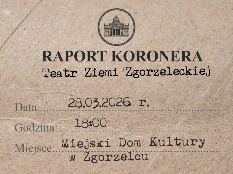28 marca o godzinie 18:00 zapraszamy na „Raport Koronera”- mroczny kryminał, którego akcja rozgrywa się w listopadowy, wietrzny wieczór. W tych niesprzyjających okolicznościach komisarz Walter, oficer policji w Goerlitz, zmaga się z makabryczną zbrodnią.
