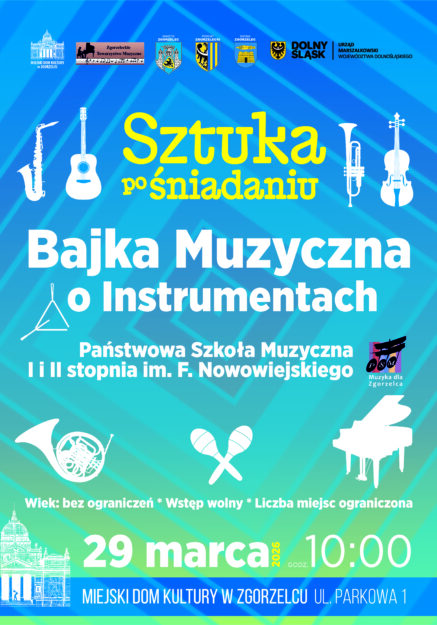 Bajka Muzyczna o Instrumentach odbywa się w ramach cyklu MDK Sztuka po Śniadaniu i projektu Muzyka dla Zgorzelca dofinansowanego z budżetu instytucji: Urząd Marszałkowski Województwa Dolnośląskiego, Miasto Zgorzelec, Powiat Zgorzelecki, Gmina Zgorzelec i Zgorzeleckie Towarzystwo Muzyczne.
