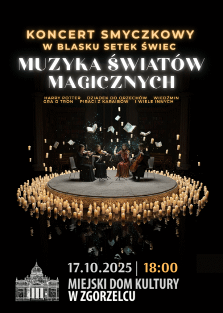 Przygotuj się na wieczór pełen czarów i filmowej magii!W kameralnej atmosferze, rozświetlonej setkami świec, kwartet smyczkowy przeniesie Cię do światów, które kochasz …
